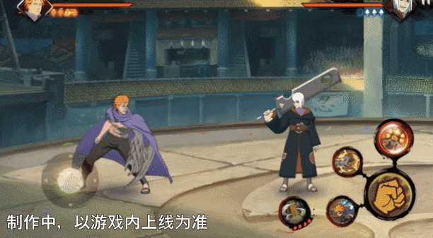 在精准蓄力时释放,忍战重吾将敌人拉回后,先将敌人牢牢抓住带至空中飞行,随后落地拖行一段距离再旋转扔出重砸地面。