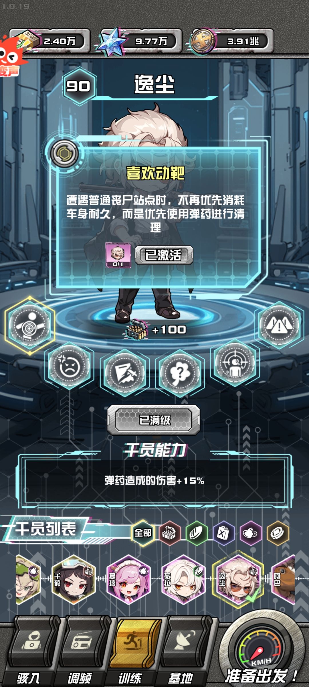 开局带一命尼亚和二命莱克西获得情报之后把尼亚换成伤害更高的逸尘他可以不用消耗耐久过普通丧尸点,0信誉的话可以选效应野蛮冲撞(可以减少25耐久消耗),也尽可能的选择能减少耐久消耗的效应,禁品和改装,这样可以大幅度提升生存几率,打BOSS时BOSS也不能对车造成伤害。