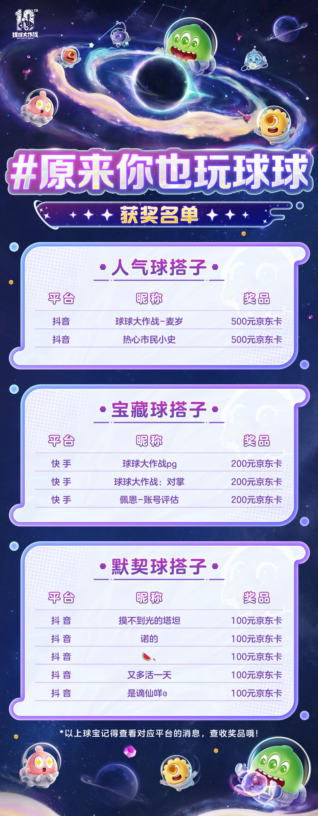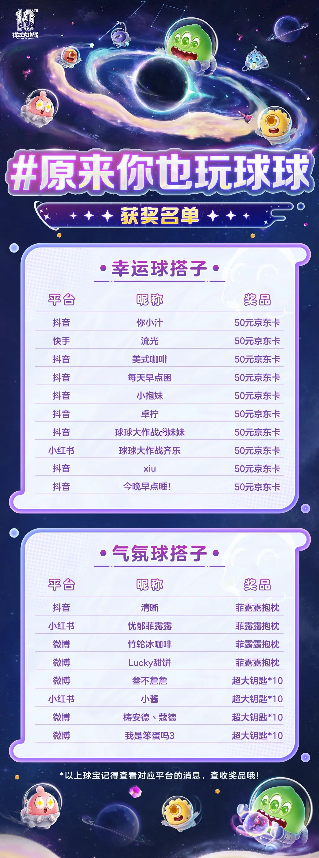 原来你也玩球球 获奖名单公布咯!是谁的球搭子上榜啦~