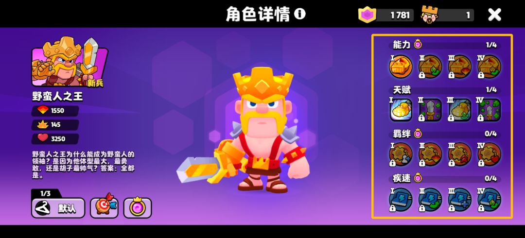 2、 能力、天赋、羁绊、疾速都有四个等级,将随着角色养成逐渐开放。