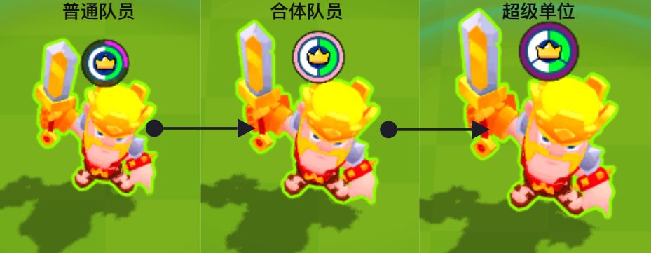 ✧ 当队伍中存在合体队员与同个角色普通队员时,它们会合并,并升级为超级单位;