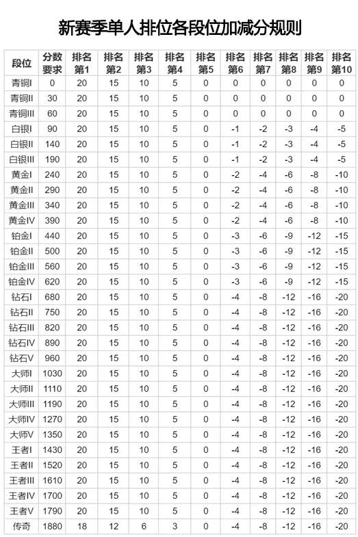 5、新赛季中,我们调整了各段位的分数规则: