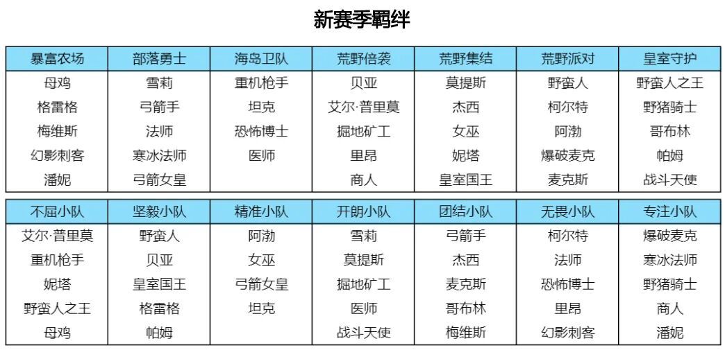 3、新赛季调整了不同羁绊对应的角色,使新赛季的羁绊组合更具新鲜感和趣味性。