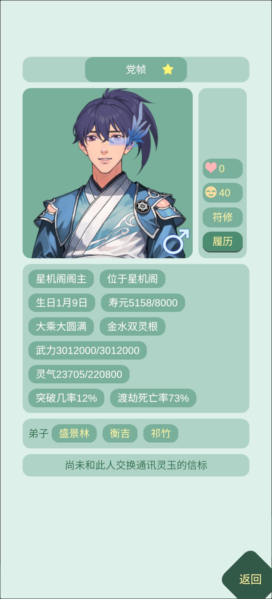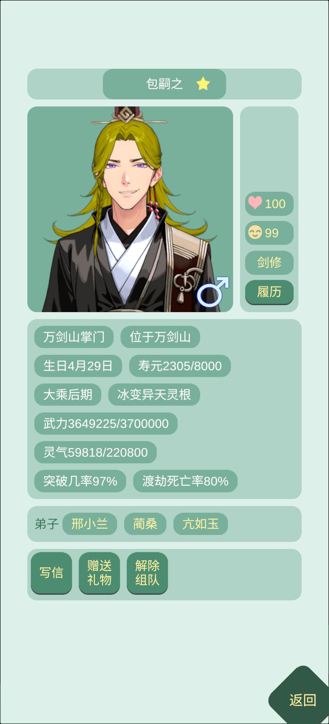 2.万剑山掌门和剑尊的战力一般都很高,直接跟他们的弟子(要直系的,就是出现在个人主页下的弟子)多互动,前期sl不到人先这样搞点好感度,然后回家里kuku练还春丹