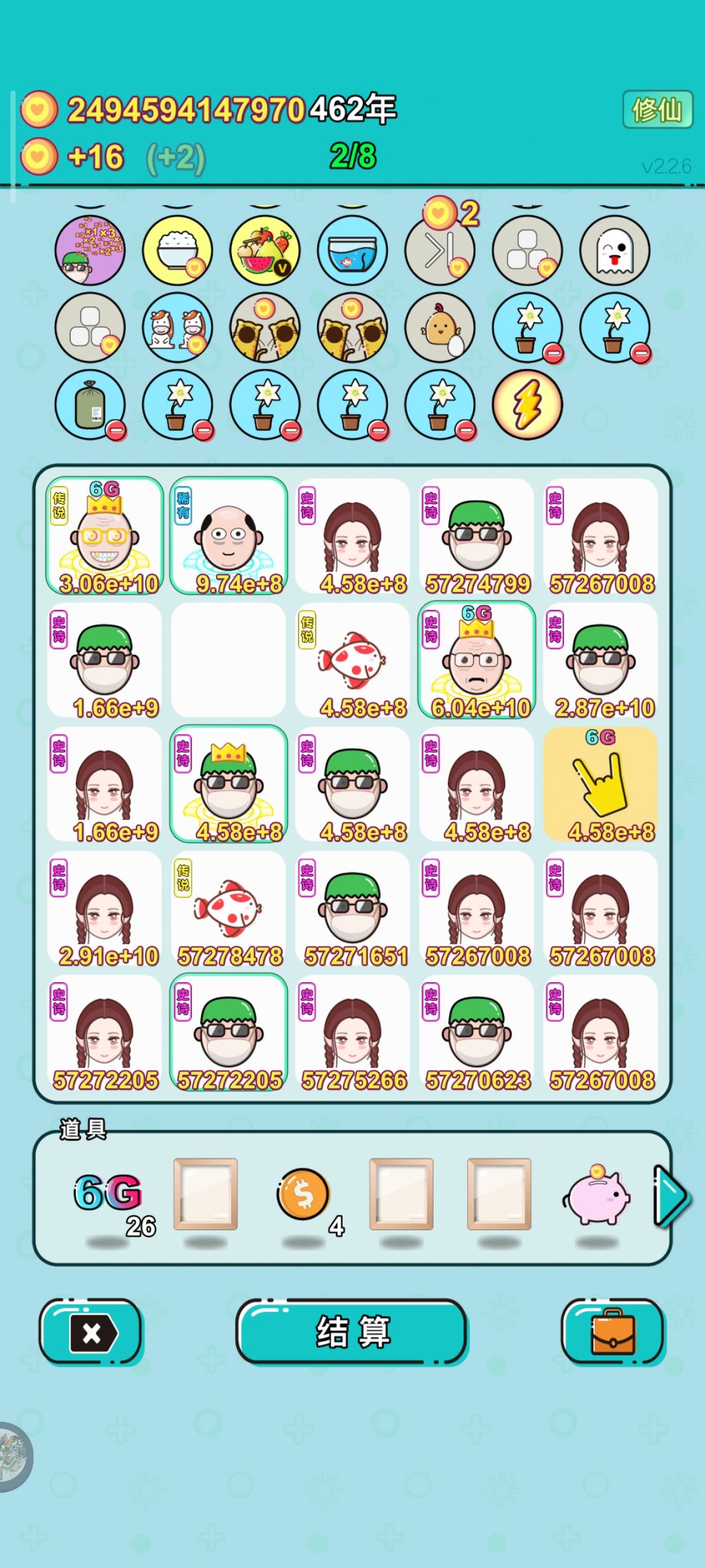 前期随便选的,本来想做水果,但是在30多年已经半明星半狼王兔窝了,心一横直接转了明星。后期存刷新做出了潜力老板和潜力首富,直接花不完了,这是通关修仙最轻松的阵容