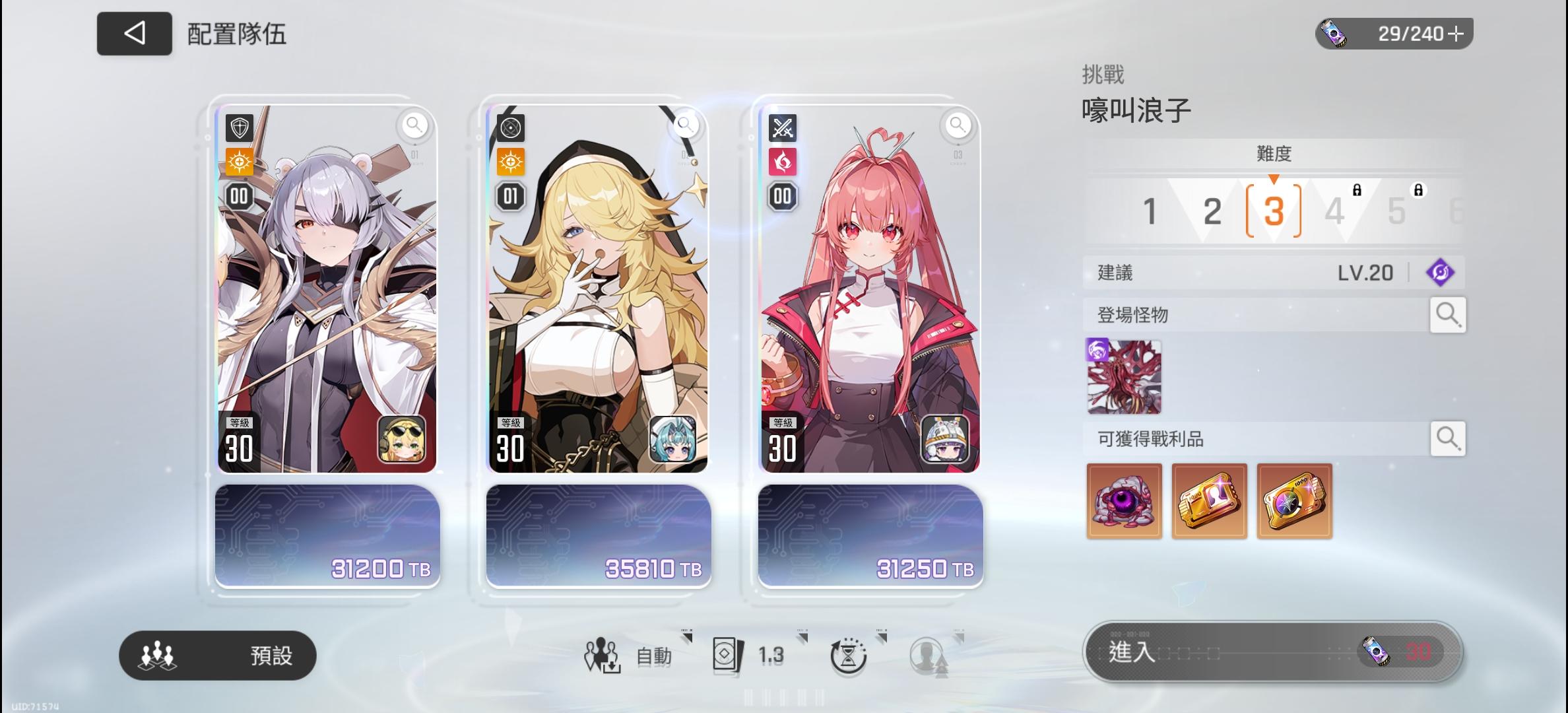 测试邮件一共送了200抽,我除了新手池第一发十连出彩,然后保底一个,剩下的都是60多抽出,运气很一般~花了两天多的时间,剧情也是推完资源基本全拿去抽角色,卡等级的时候一直在刷肉鸽,想要获取更稀有的装备就得挑战更困难的模式,右上角那难度开关发现的有些晚就是了。。。