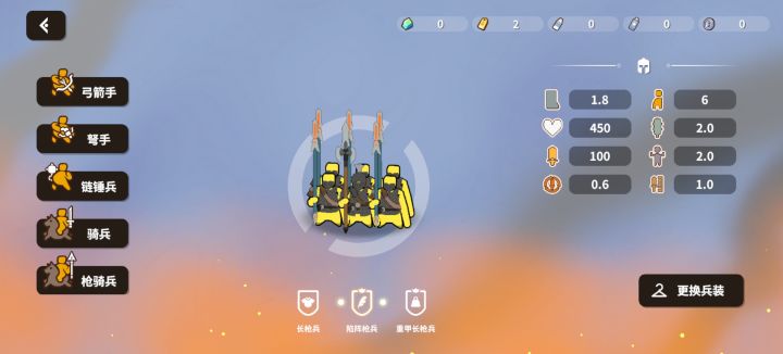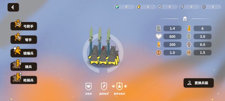 枪兵在游戏的定位中是一个输出单位,无论是在前期还是后期都不可小觑,因此开局投斧的第一目标也往往是他。枪兵拥有相较于其他近战步兵更远的攻击距离,适中的攻击力,但自身较为脆皮,比较惧怕弩手和弓手,单走生存能力极差,团战往前乱莾秒没,因此他的最佳搭档是盾兵。开局优先点枪阵,第二次升级可视情况点攻击或者人数,在我看来,前期枪兵需要9人(有大佬说6人足够,但9人对于普通玩家更友好,容错率更高),升级一定的防御,最好能够点满攻击(可根据点数的富余来决定是否点刚毅),玩枪兵有一点要牢记,千万不要单走