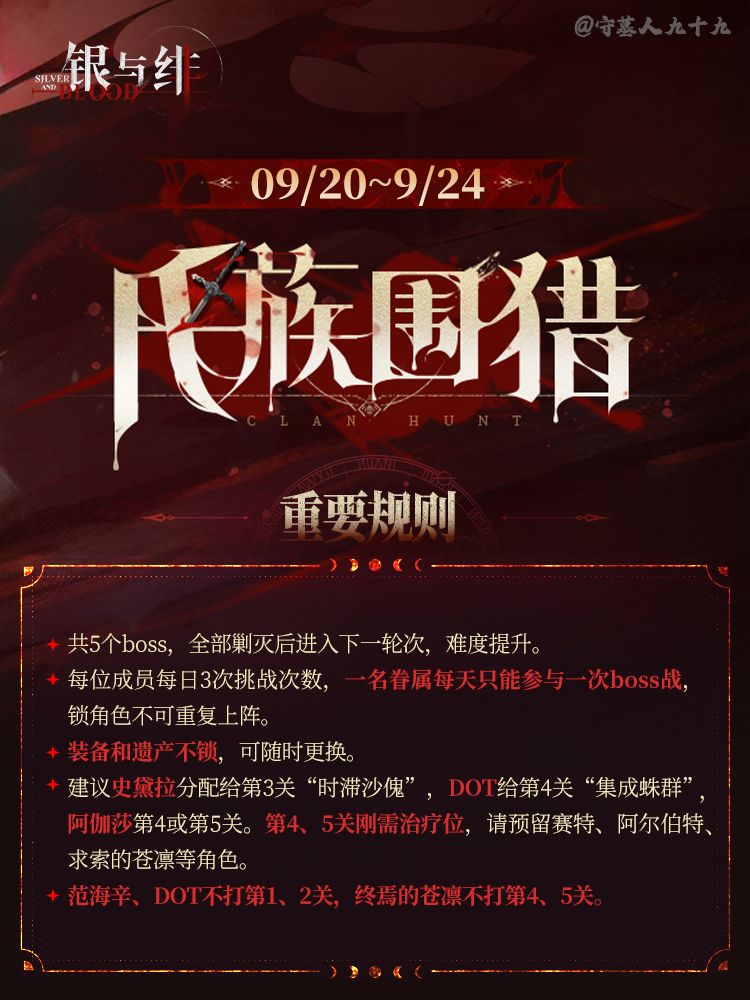 《银与绯》氏族围猎(9/20~9/24)攻略