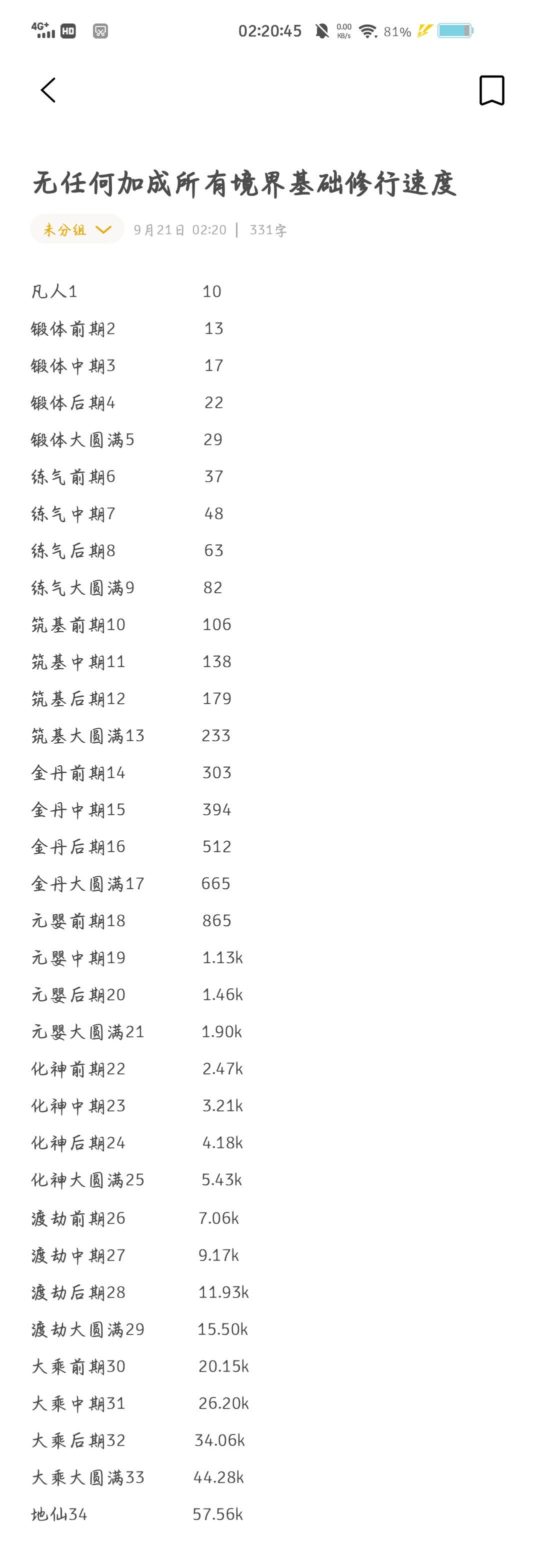 @聆空戏时熬夜总结的每个境界的基础修炼速度,这真的很难!