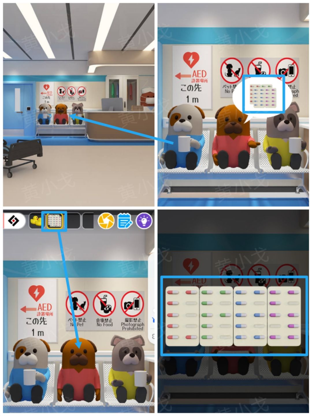 2.点击动物前面的公文包上的密码锁,根据输入框的颜色提示,结合【吃剩的药】上的线索,输入密码:FECS