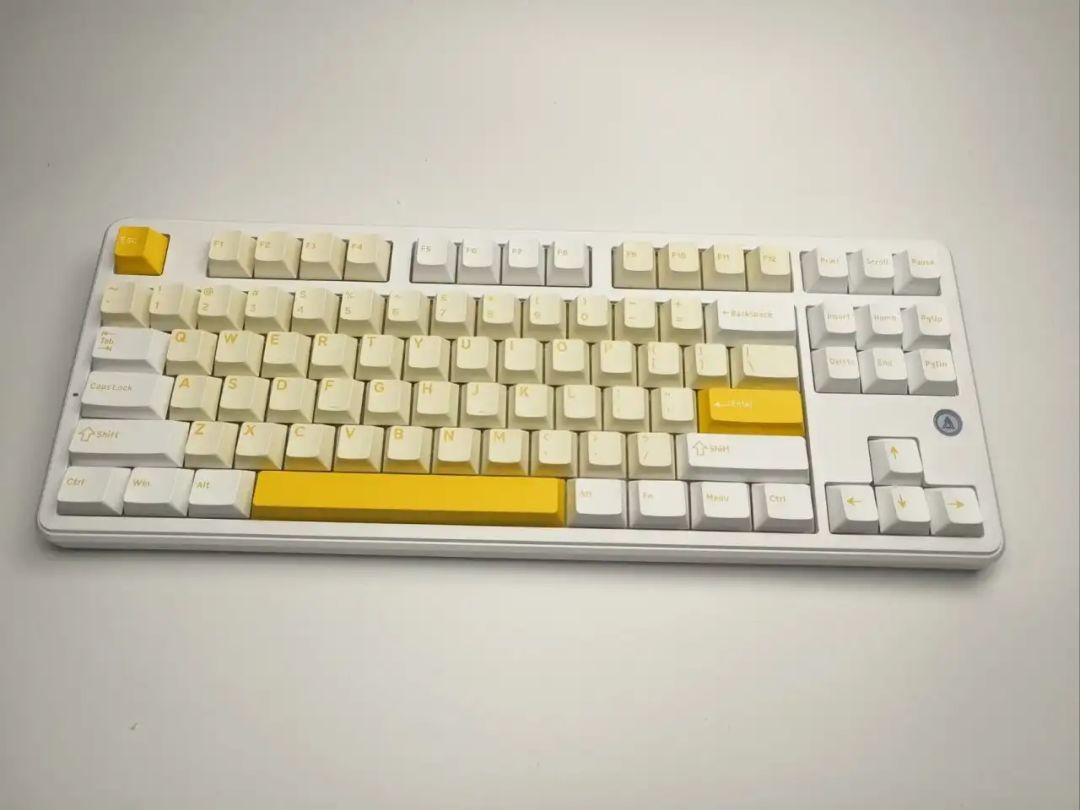 这款键盘不带屏版本的有黑莓粉、墨山青、奶酪黄三种配色,三种配色除了黑莓粉是渐变色之外,墨山青与奶酪黄都是三拼色,个人感觉这个奶酪黄配色颜值是真的高,说来也奇怪,市面上这么多的键盘,却很少有这种奶酪黄配色的键盘,尤其是在熬夜打游戏时用这款键盘,用的真给我看饿了。