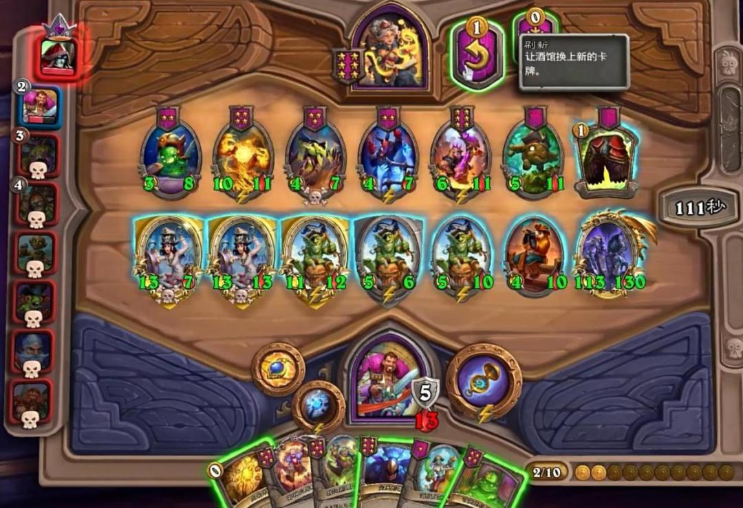 博弈方面,酒馆的信息来源仅有上回合的主要种族和该种族人数,一些情况的确是可以通过一张牌完成逆转翻盘的,常见的就是决赛圈下毒打死傻大个。