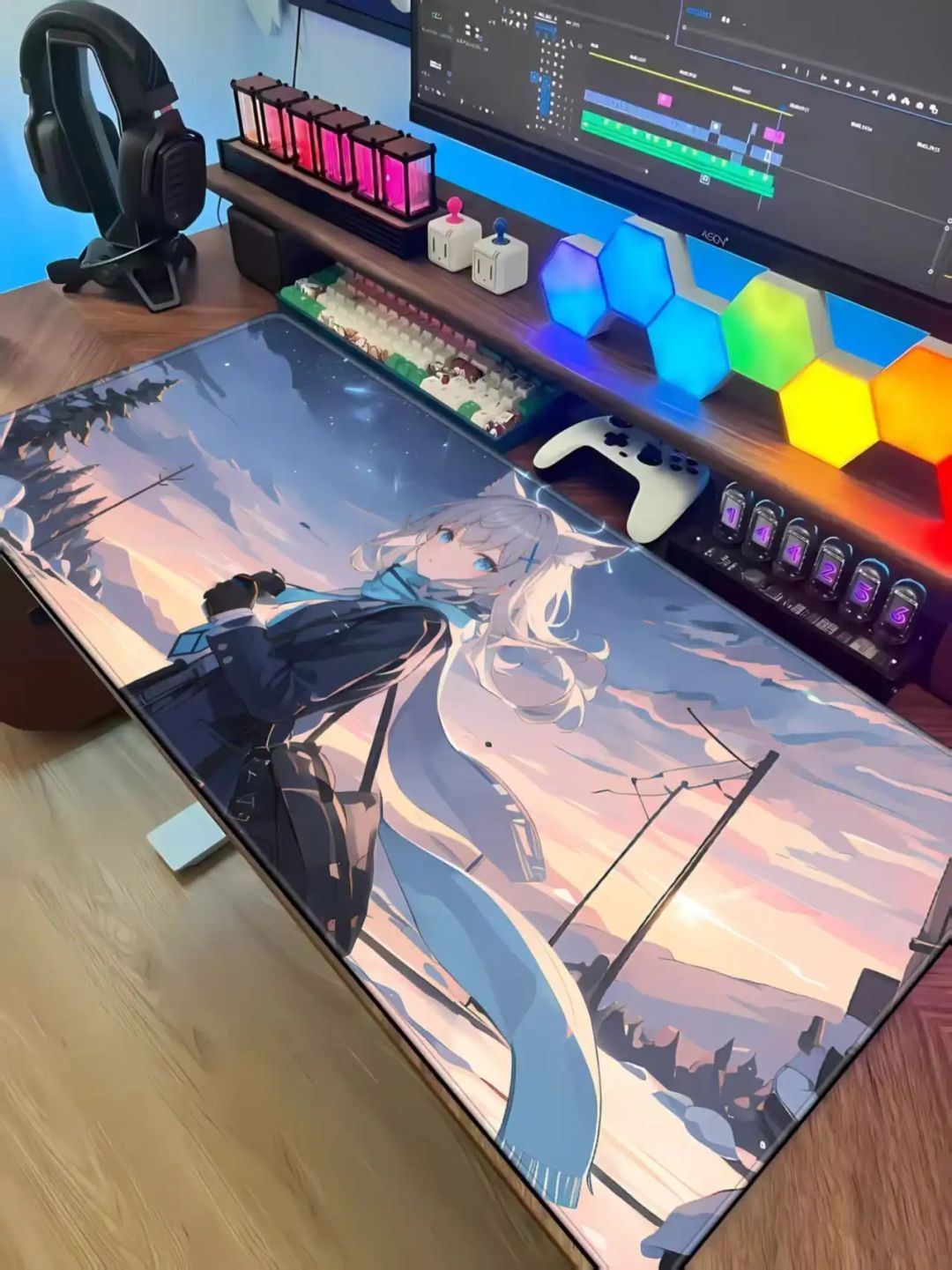 以上这几款类型的鼠标垫大多属于x轴y轴滑度相同或者x轴滑度高于y轴滑度的鼠标垫,这种类型的鼠标垫普遍适用于FPS游戏,那么有没有y轴滑度高于x轴滑度的鼠标垫呢?有的兄弟,有的,首席玩家的“琉璃”鼠标垫就采用了竖向高密编织工艺,因此y轴滑度要高于x轴,并且这种工艺纹理细腻,弹性更强,还有轻微绒毛质感,亲肤性更强。这种纹理实际上也属于99式的一种,并且这款鼠标垫的图案为“琉”“璃”两位帅气的小姐姐,两个尺寸售价分别为39元/49元,对于喜欢二次元的玩家而言这款鼠标垫肯定是不容错过。