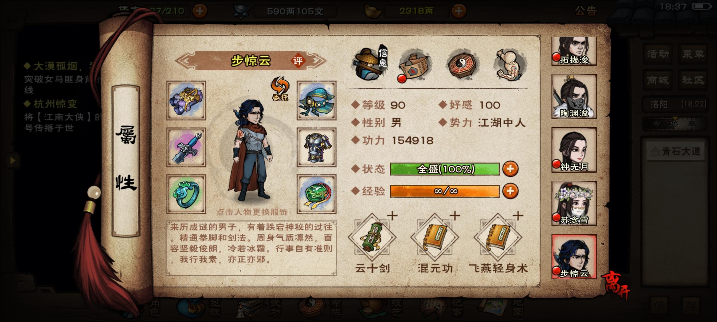 然后背包里面还多了好几本秘籍,不知道该给谁学,那个青蛾功看网上说给商用,但我不想买商,这个功法干啥的我也不知道