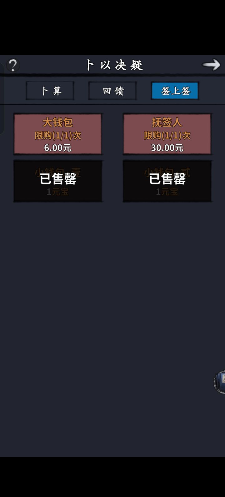 其次卜卦分为上上、大吉、上吉、中吉、中平,先声明,冲着买古董凑次数无法做到6400元宝45次,基本都是冲着100元宝左右的东西进行购买。购买建议:上上,这个卦象很多选择可以买,灵木、旗子、清露、部分古董,最低价格可以去到50元宝;大吉,这个卦象也很多选择,和上上基本没多大差别;上吉,这个卦象基本都是侠客信物和秘籍,非常贵,建议购买100元宝的清露,其次是很便宜的矿石堆;中吉,这卦象东西很多,价格堪比原价购买,购买建议和上吉一样,刷到便宜清露和矿石堆就买了吧;中平,这个卦象基本就是跳过,给氪佬买的,买的东西最多,也是最贵的,不知道是我没刷到还是没有,没看见便宜的商品。