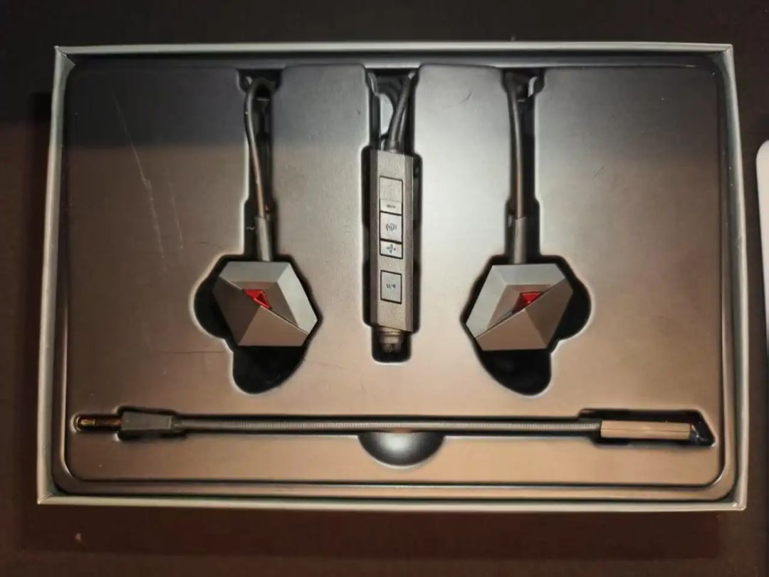 这款耳机一共有3.5mm以及typeC两个版本,价格分别是78.9元以及98.9元,并且还附赠了一对耳塞以及一个收纳包,性价比方面可以说直接拉满了。在外观方面,这款耳机的腔体形状为六棱黑晶切割,因此质地非常有质感。中间有红色三角点缀,给人一种死神之眼的感觉,相当霸气,其中TypeC版本中间搭载了一个红色的小灯泡,在游玩过程中,墙体散发着红色的灯光,别提有多霸气了,用点睛之笔来形容毫不为过。