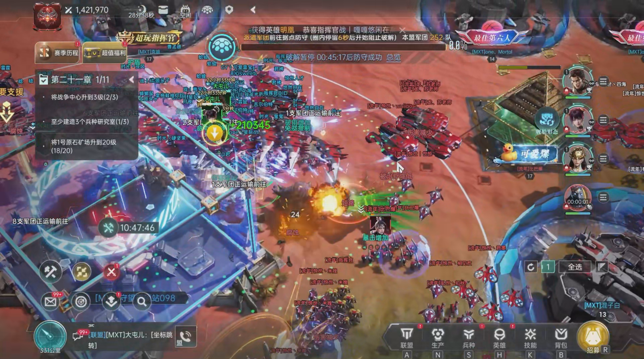 第三天清晨,惊世流云势力完成全部T6部队转区至宇宙区域的部署,正式加入战局。此后一整天,各方势力在天琴座左方区域展开激烈的搏斗与守城战,战场上局势瞬息万变,双方伤亡惨重。直至当晚六点,关键据点098最终失守,联军被迫调整作战计划。