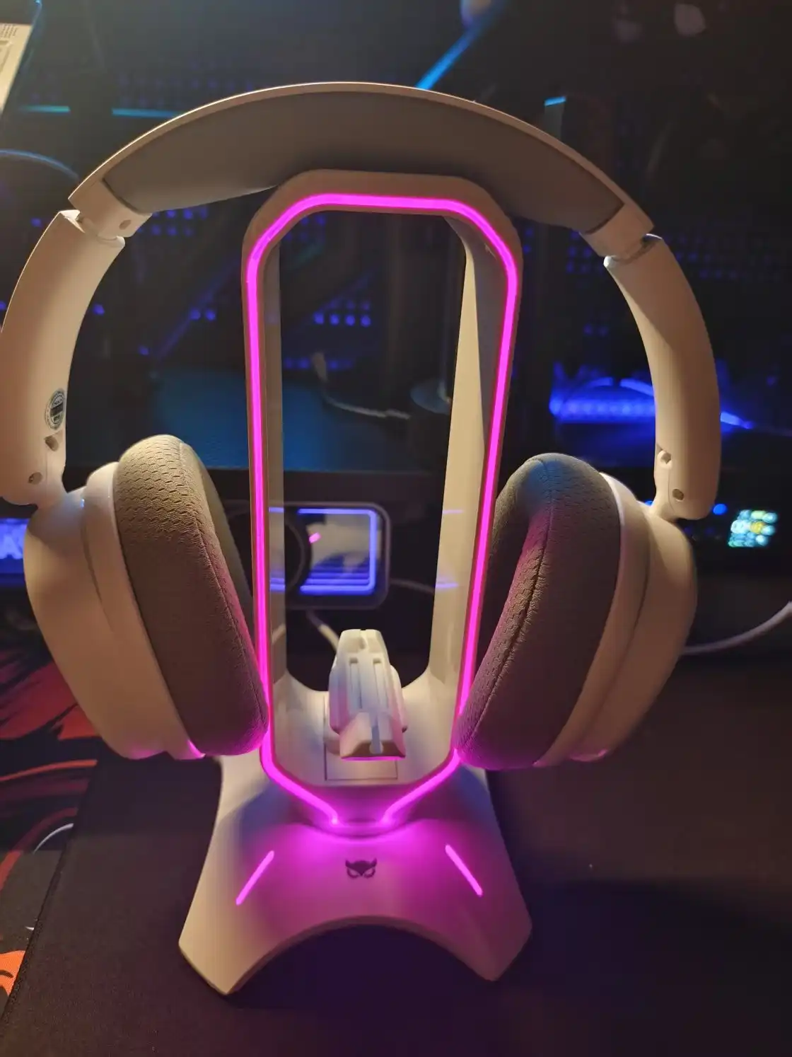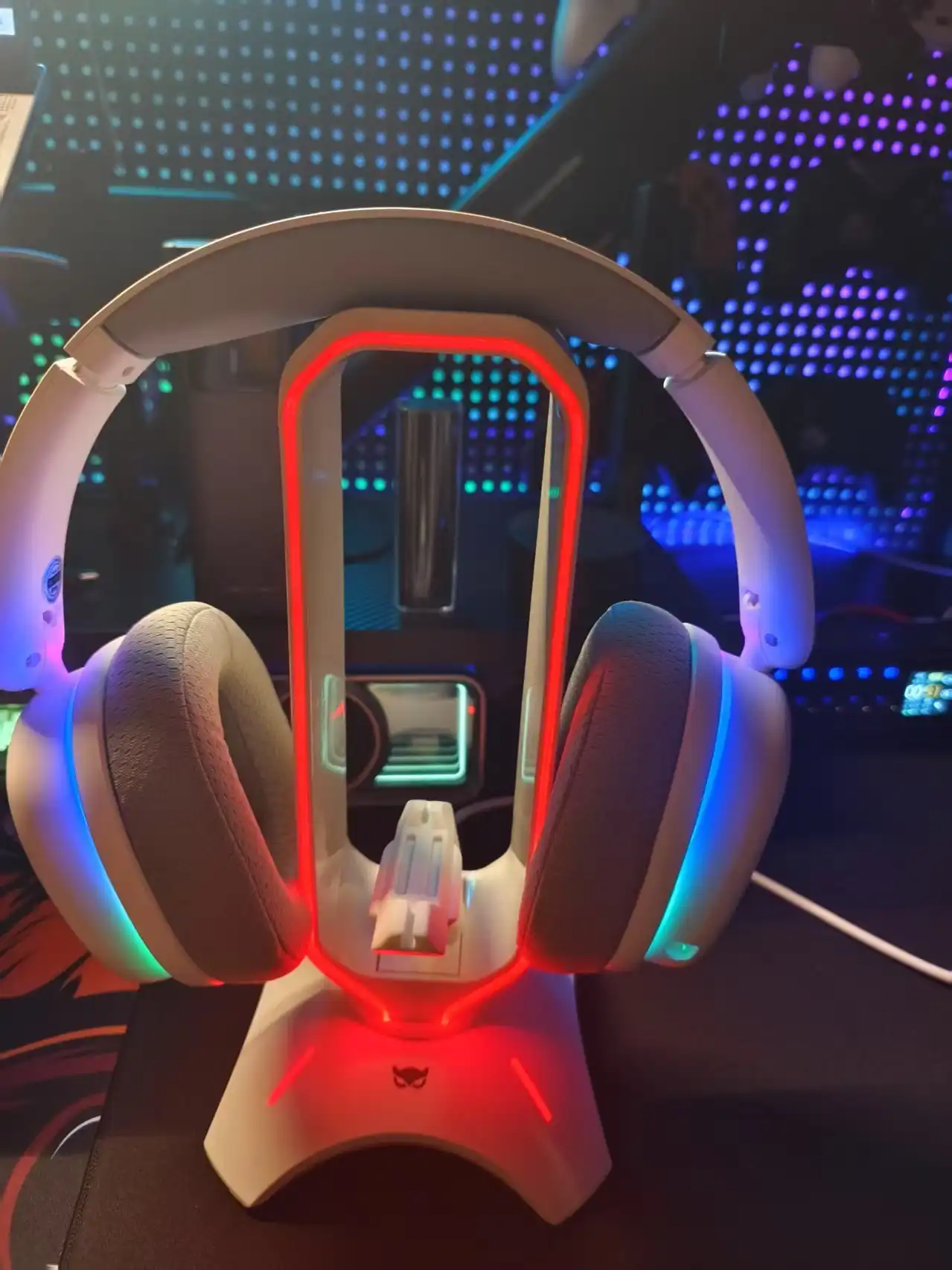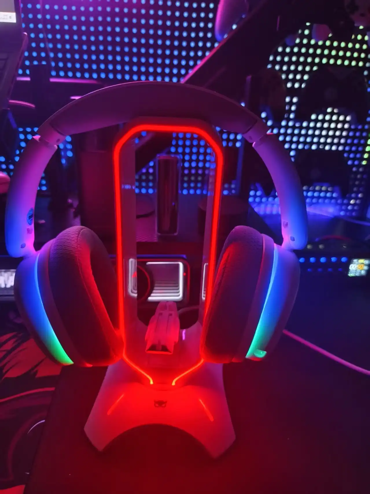 产品的配件也是相当齐全的,分别是一个2.4G接收器,一根麦克风,一根3.5MM接口以及一条充电线。值得一提的是,产品一共有价值99元的标准版已经169元的Pro版本,不管是哪个版本,只需要加30元就可以买到原价69元的超炫酷rgb耳机支架,说实话,你要是喜欢光污染桌搭,那这个支架绝对得果断拿下,没有拿下的我已经在掉小珍珠了。
