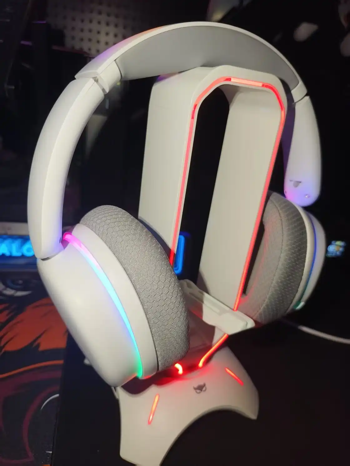 打游戏有没有技术先暂且不提,气势一定要先到位。而气势在外设上的具体表现那肯定是rgb灯效了。这款耳机在两侧分别加了一圈rgb光环。试想一下,你突然把原本不会发光的耳机换成这个光鲜亮丽的耳机,你室友见了一定会非常羡慕的望向你:“哇,你换新耳机了,旧的呢?”“旧的不会发光,我等着买根rgb灯条装上再用。”“那为啥不再给这个再装一根?不更帅吗?”“……有道理!”