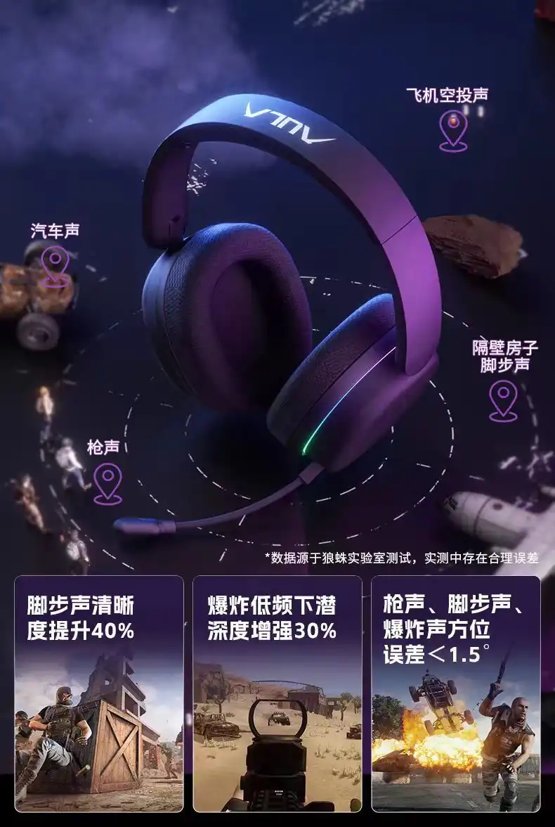 耳机的电池容量为1000mAh,在关闭灯光状态下,50%电量续航时间能高达65h之久,BT模式更是长达80个小时。o而k之我不是赵括,光纸上谈兵怎么行?接下来进入实战阶段,说实话一开始还真适应不过来,这款耳机尤其是在脚步上的声效反馈提升是相当巨大的,以至于队友的脚步都变得更加清晰了,敌人的脚步那更是仿佛如临现场一般,我甚至在打游戏还产生了奇怪的想法:这要是在实战,你漏这么大的脚步,这不纯当炮灰吗?并且场景声音反馈相当清晰,丝毫没有任何延迟,比如无畏契约中开局总会有一位角色说一个固定语音,正常的电竞耳机基本上不太能听出来具体位置,而这款耳机能够很清晰的听到声音是从哪里发出来的,相当恐怖。