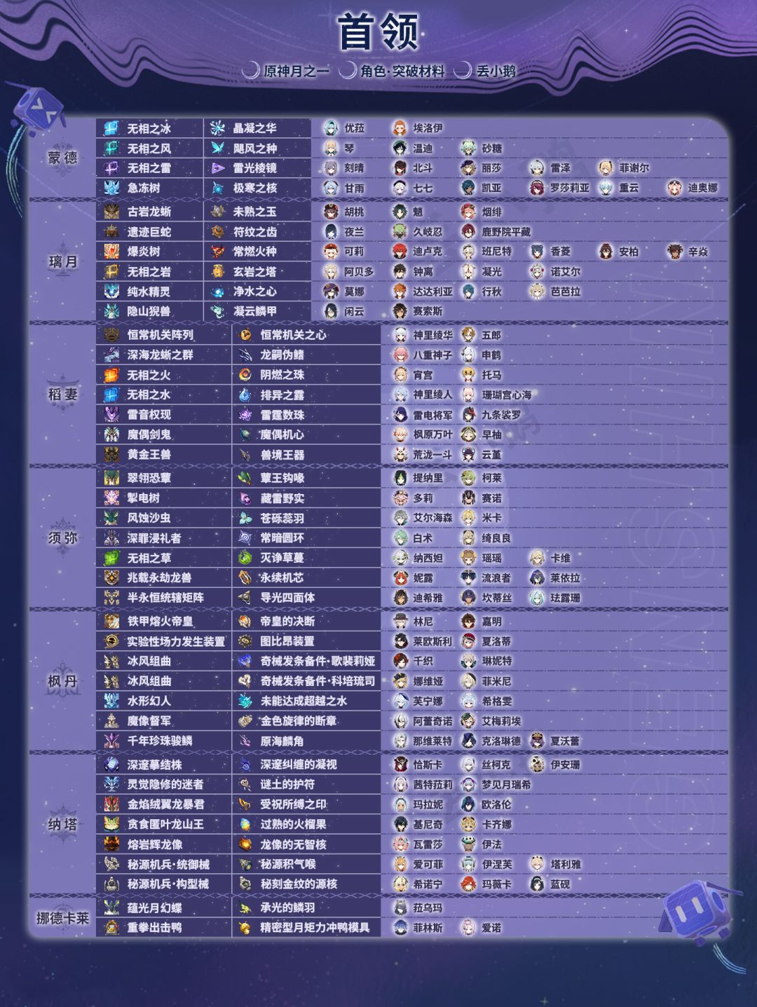 角色突破时打首领除了掉落图中的材料,还会掉落元素碎屑/元素断片/元素块之类的材料。