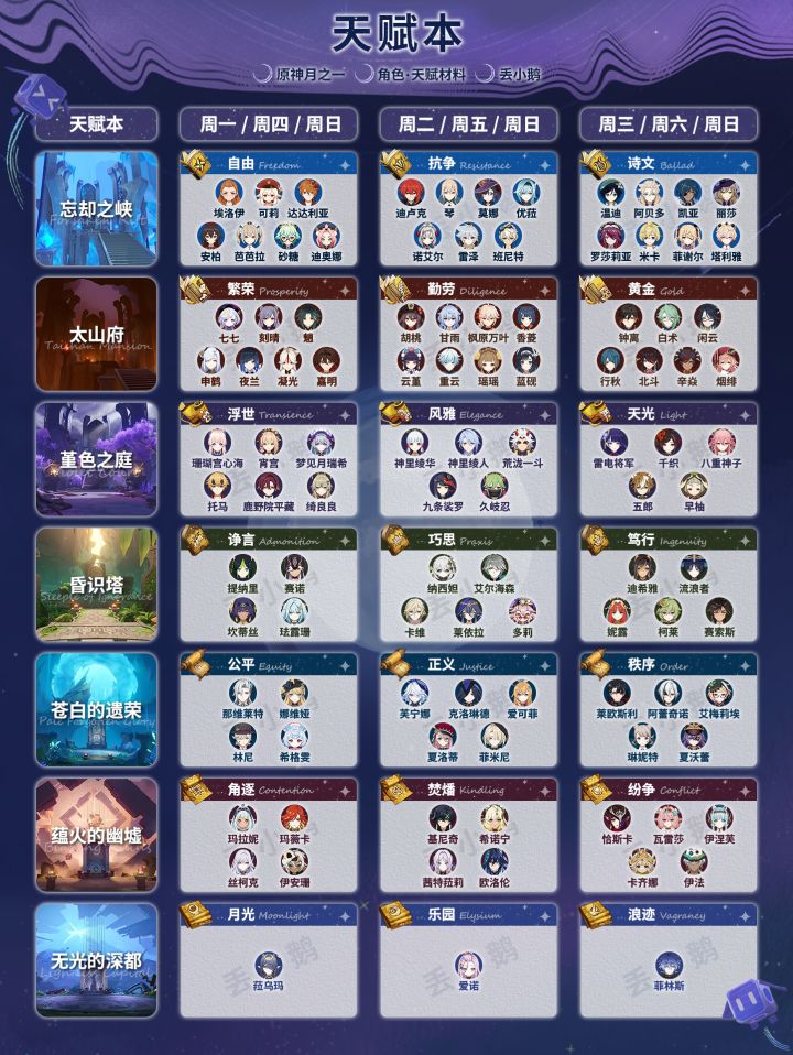 ⭐️月之一下半:菲林斯(新)、夜兰、爱诺(新)、砂糖、多莉