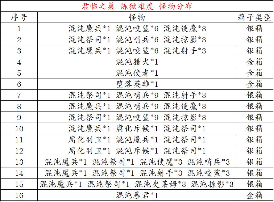 炼狱难度 副本路线: