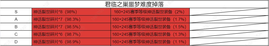 君临之巢 困难/噩梦/炼狱/深渊 神话装备套装效果: