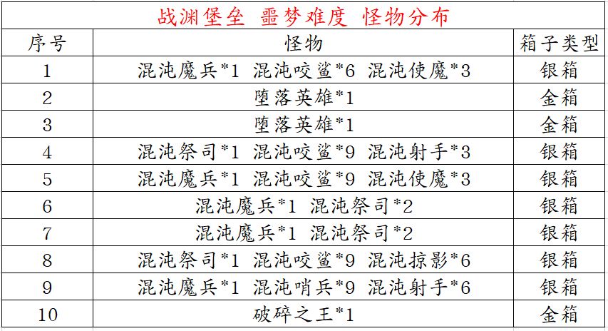深渊难度 副本路线: