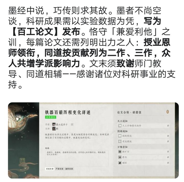 9月26日,墨山道即将开放!在门里还要写论文!还要一作二作,致谢师门,晋升还要选择研习方向,拜认师门,定期填写研究申报表,这妥妥地仿研究生模式啊 ![[嗒啦啦4_不愧是你]](https://img-tc.tapimg.com/market/images/a9080a7d42b1d9baf3fa892c54bf3381.gif)