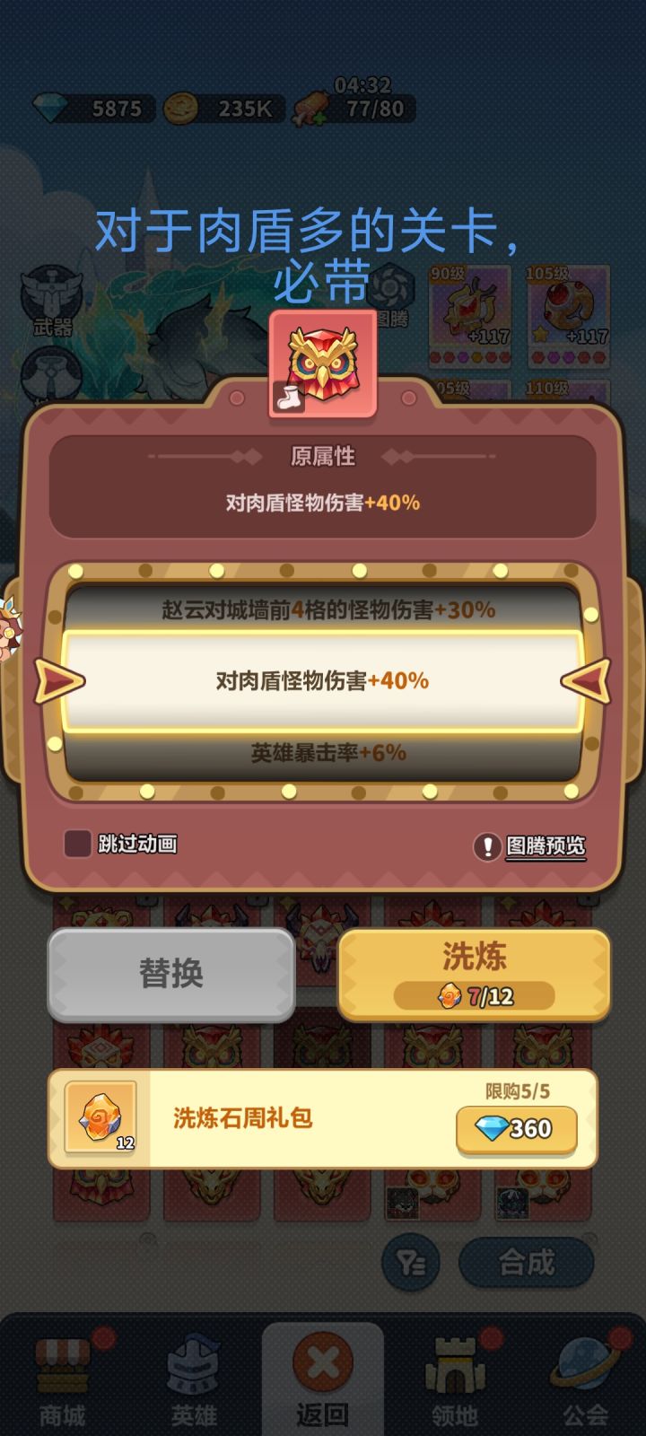 · 如果关卡怪物对城墙威胁巨大,城墙免疫或护盾类图腾能有效提高容错率。