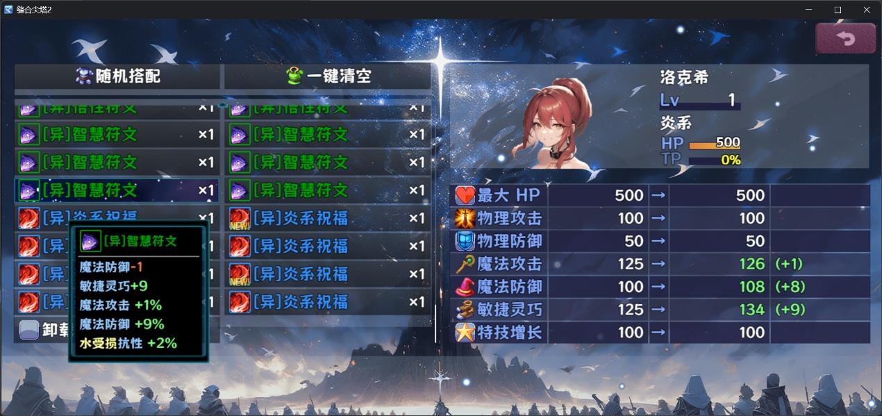 所以,作者也要在自己的游戏里爽一下,于是加入了让装备产生随机属性的功能。
