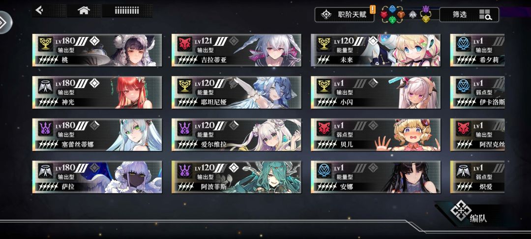 2.0彩虹队成本较高,低配版可以参考1.0配队(1.0版传送门),刚需角色桃,神光,雷龙爱尔维拉,其他角色都可以替换成其他的。萨拉专武不到5建议不要上。