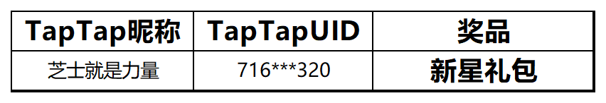 恭喜以下1位旅行者获得【新星礼包】一份~