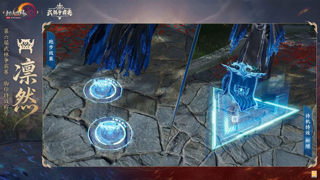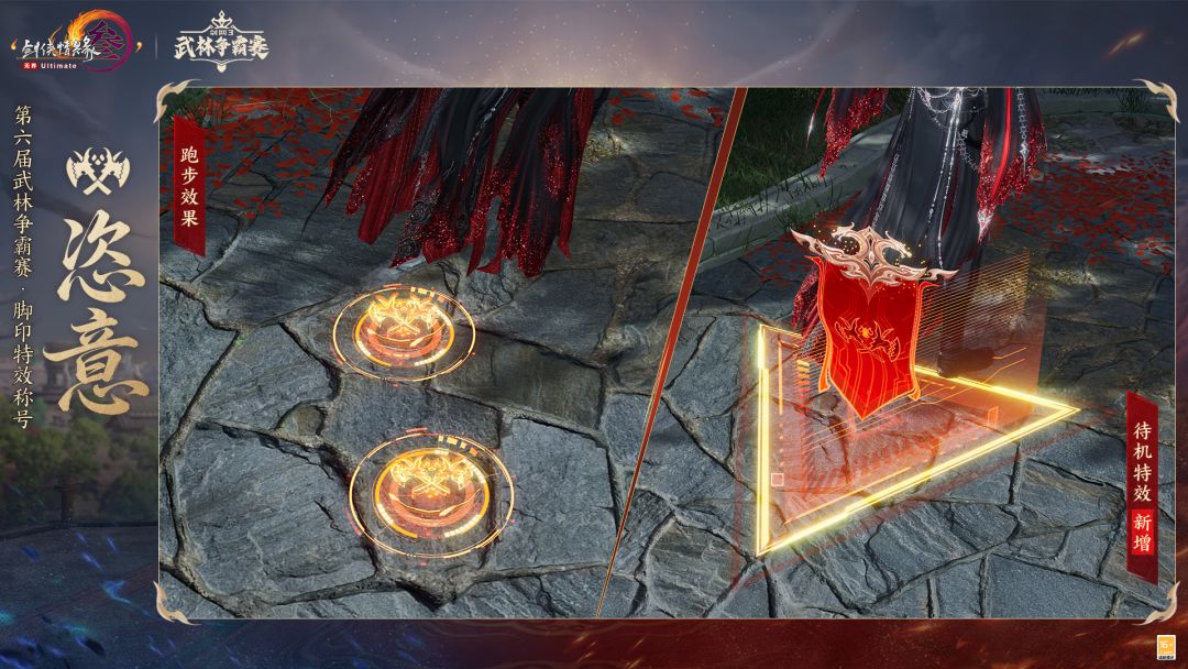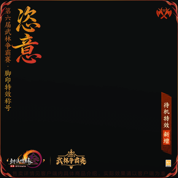正气贯虹昭穹苍,逍遥自在任云游,武林争霸赛全新阵营主题脚印特效称号“凛然”与“恣意”飒然登场,并新增待机特效,侠士在站立状态时也将有专属特效呈现,尽显侠士卓然英姿!