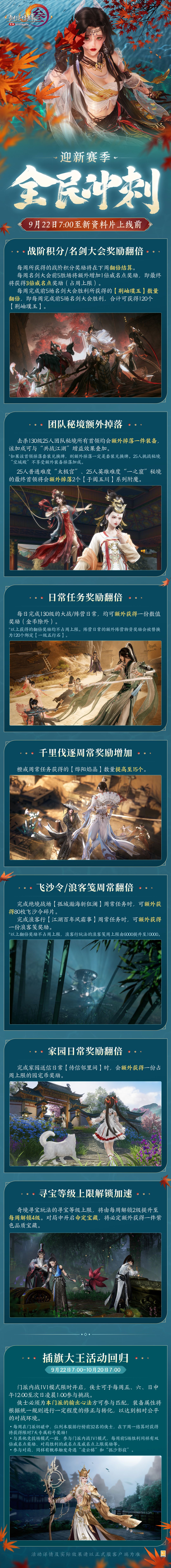 与此同时,多项玩法赛季末加速活动同步开启,冲刺备战新赛季!秘境挑战、阵营对抗与家园日常等各类玩法均可获得对应加速奖励,扬鞭策马,仗义四方!
