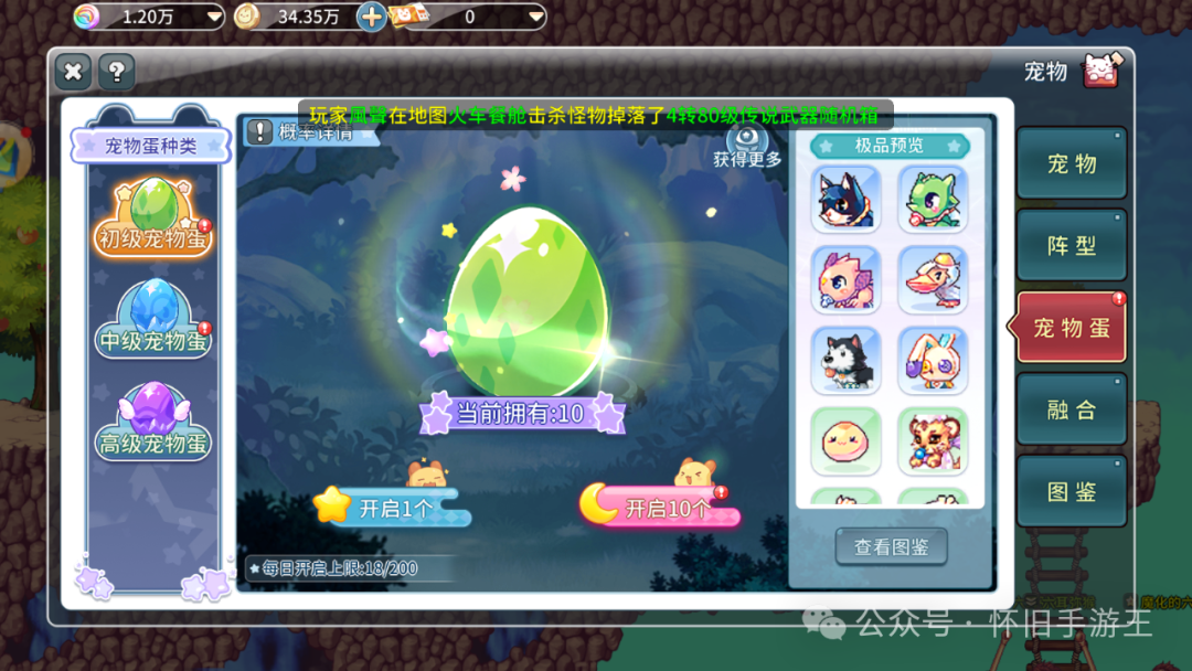 - 萌宠养成:宠物既是治愈陪伴,更是战力关键。通过 **“宠物挑战”** 获取初 / 中 / 高级宠物蛋(对应孵化 C/B、B/A、A/S 级宠物),3 个同等级宠物可合成更高阶伙伴(概率全透明);若想强化战力,放入 3 个 S 级宠物可100% 提升核心宠物的四维资质。当角色解锁宠物阵型,上阵宠物的属性与被动技能将直接加成,战力翻倍;