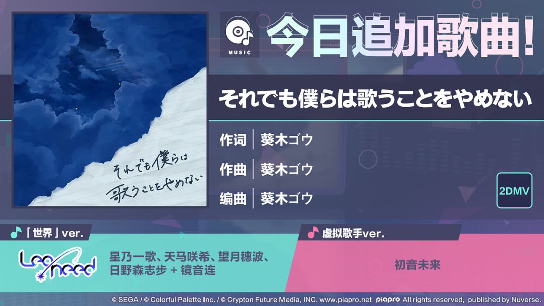 9/23 15:00起,追加歌曲《それでも僕らは歌うことをやめない》!