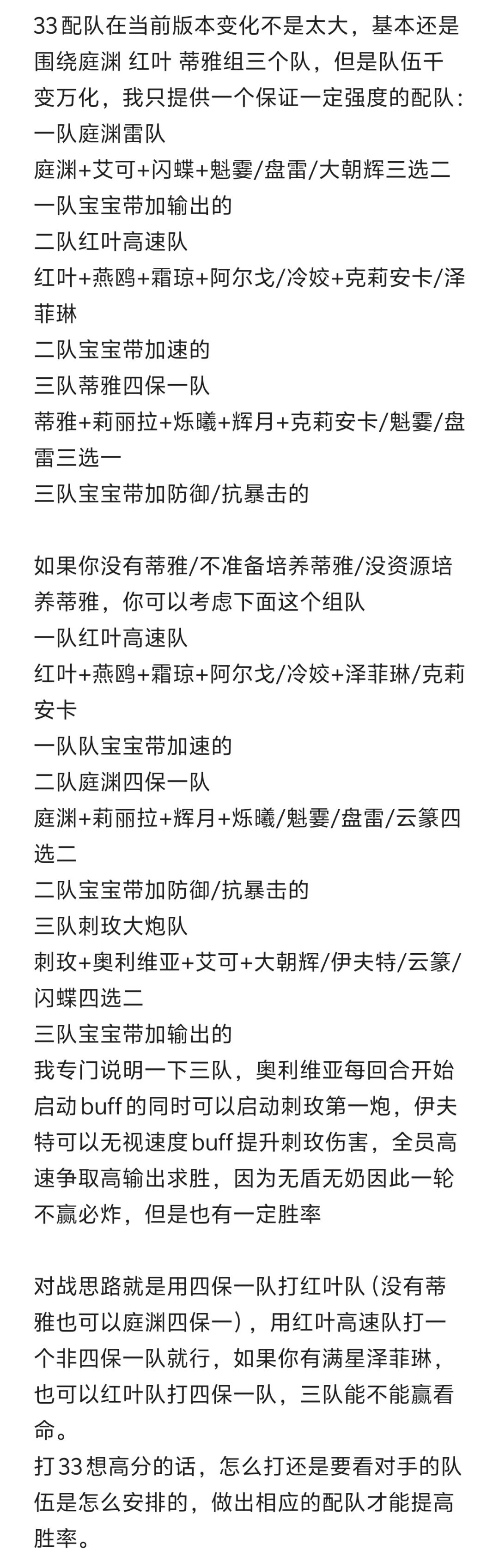 由于发帖字数关系,人员培养,11及33配队,对战思路请看图。