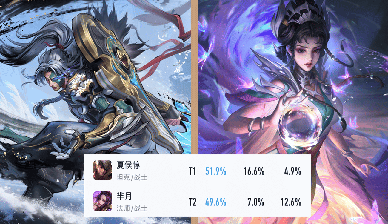 而夏侯惇和芈月,前者前期强度很高,很容易拿到线权,到了后期不仅坦度非常高,抗2、3个人的输出都没什么问题,而且还能粘着法师、射手打,51.9%的胜率,16.6%的登场率足以说明他的强度很高。