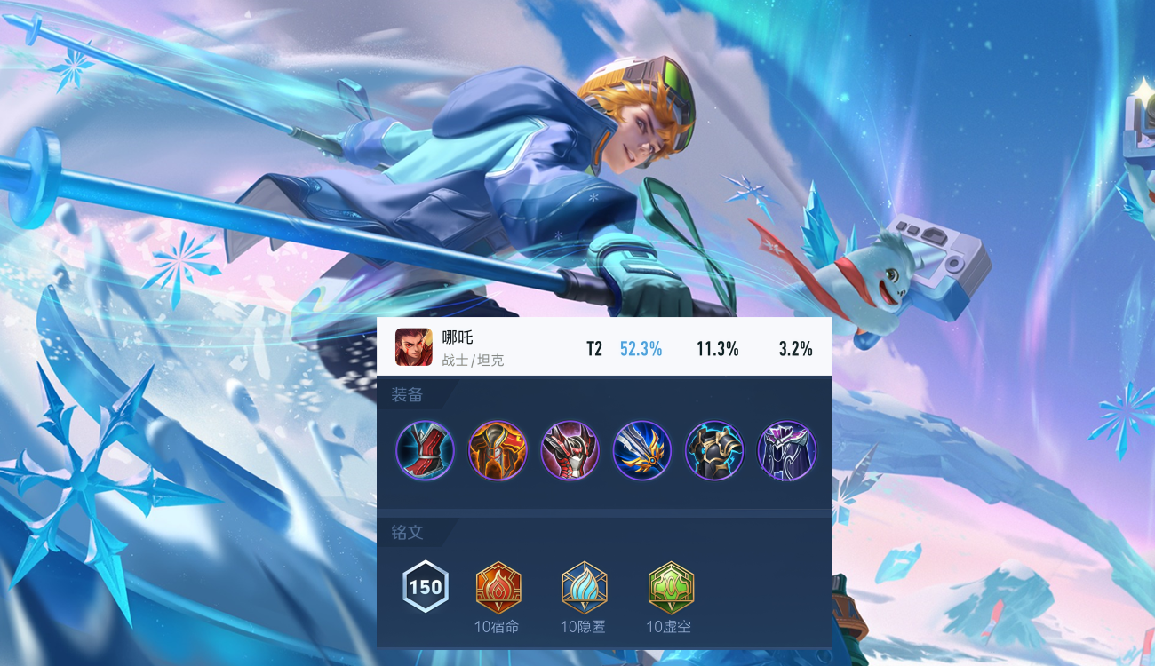 哪吒实际上是一个被忽视的高强度上分英雄,他不仅在所有分段、巅峰赛、顶端排位三个分段的胜率都超过了50%,而且在顶端排位中更是有着52.3%的胜率,11.3%的登场率,炙炼火种的限制生命回复,护盾、真伤、击退,大招的支援突进,配上冷静之靴、红莲斗篷、反伤刺甲、破军、冰霜冲击、魔女斗篷的半肉出装,既能当半个前排,又能当刺客突进后排。