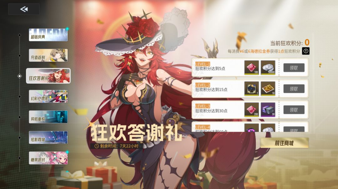 ■活动期间,充值购买商品或消耗海德拉金券均可获得狂欢积分,使用积分可兑换限定头像框、升格原型和海德拉晶钻等奖励。
