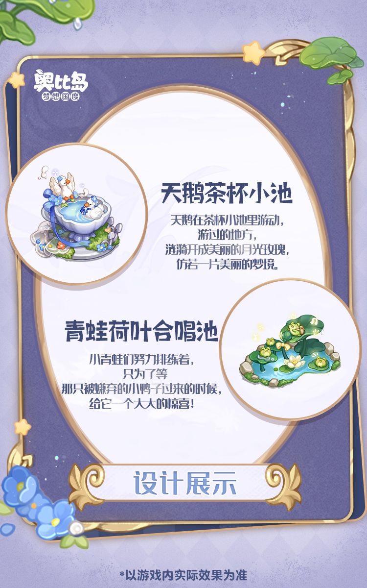 ⭐奥比生活新系列「天鹅湖畔套装」「青蛙池边套装」、「小黄鸭绒绒帽」「小黄鸭扁嘴巴」「小青蛙双肩包」系列散件、「天鹅茶杯小池」「青蛙荷叶合唱池」家具以及「天鹅湖畔」背景卡,将在9月26日上线。本期还有奥比生活塔罗系列装扮返场,本期生活达到一定等级即可获得「幽灵骑士套装」「魅影心魔套装」的🛒资格,喜欢的奥比们快看过来👇