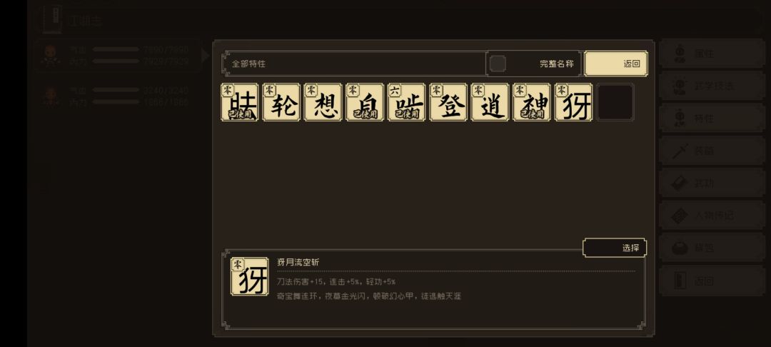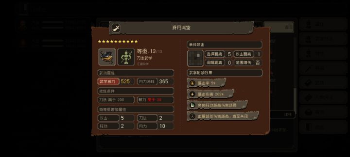 单体刀法,十三级学满给特性。(15伤害,5%连击,5%轻功)