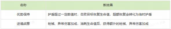 枪械伤害提升,护盾越高加成越高,额外增加枪械伤害(40%护盾时达成)