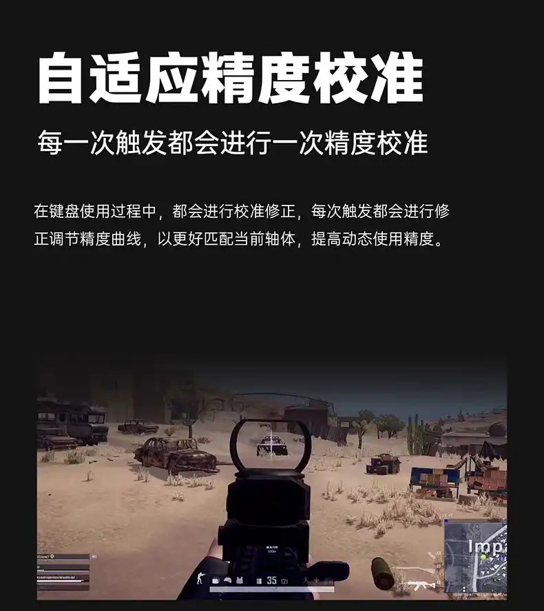 众所不周知,许多键盘在经过玩家们长期使用之后,其轴体的精度曲线会发生不可避免的偏移,这款键盘为了解决这个比较严重的问题,特意在玩家们使用过程中进行自动校准,从而更好的匹配当前的轴体,提高动态使用精度。