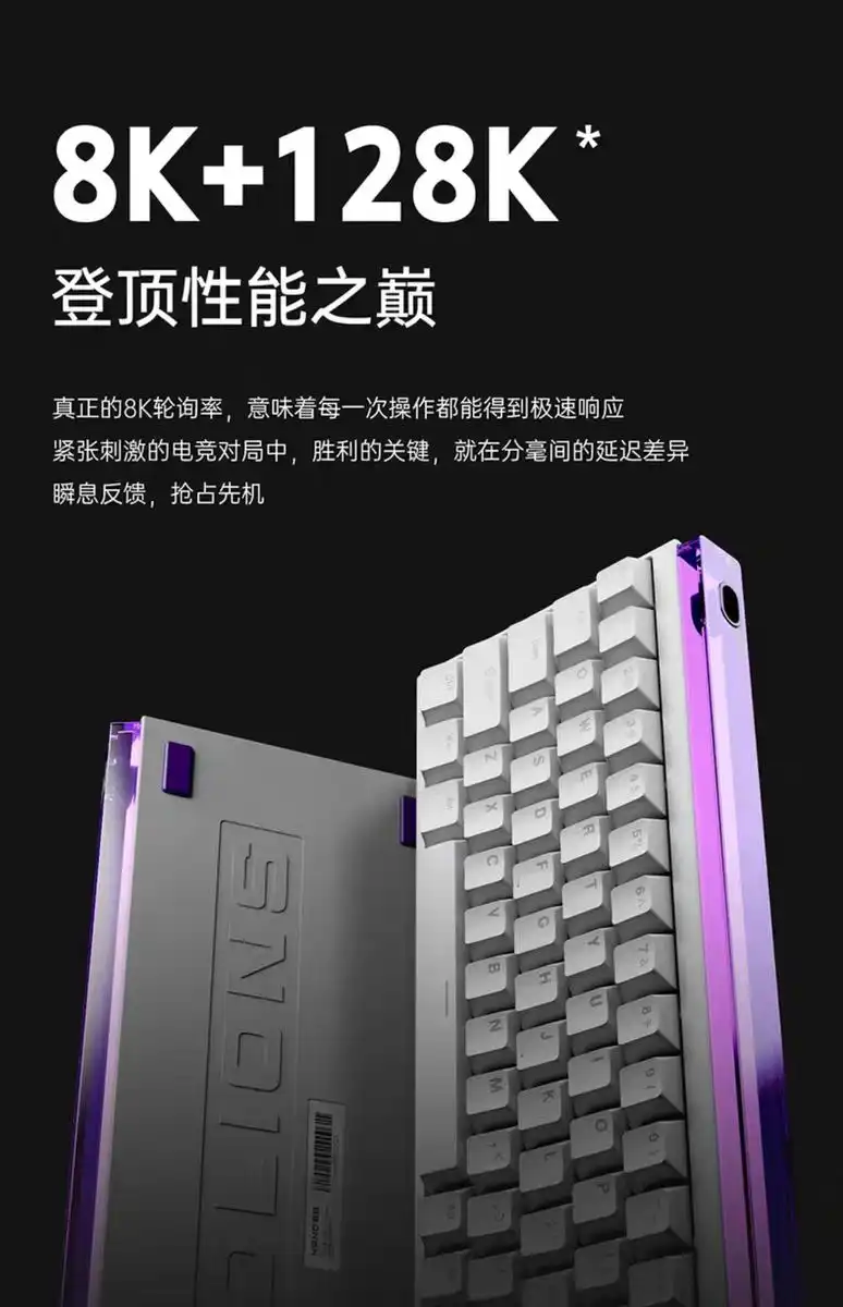 当然,想要玩好游戏,除了轴体优异之外,性能更是得快人一步。这款键盘的轮询率高达8kHz。0.1ms超低延迟经远超人体所能感受到的最低延迟了,就算是职业学出来了,也丝毫感受不到一点延迟效果。并且128k超高扫描率能够显著提升游戏中的操作反馈速度,非常适合需要快速反应的游戏。打瓦打go不在话下。