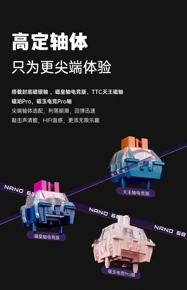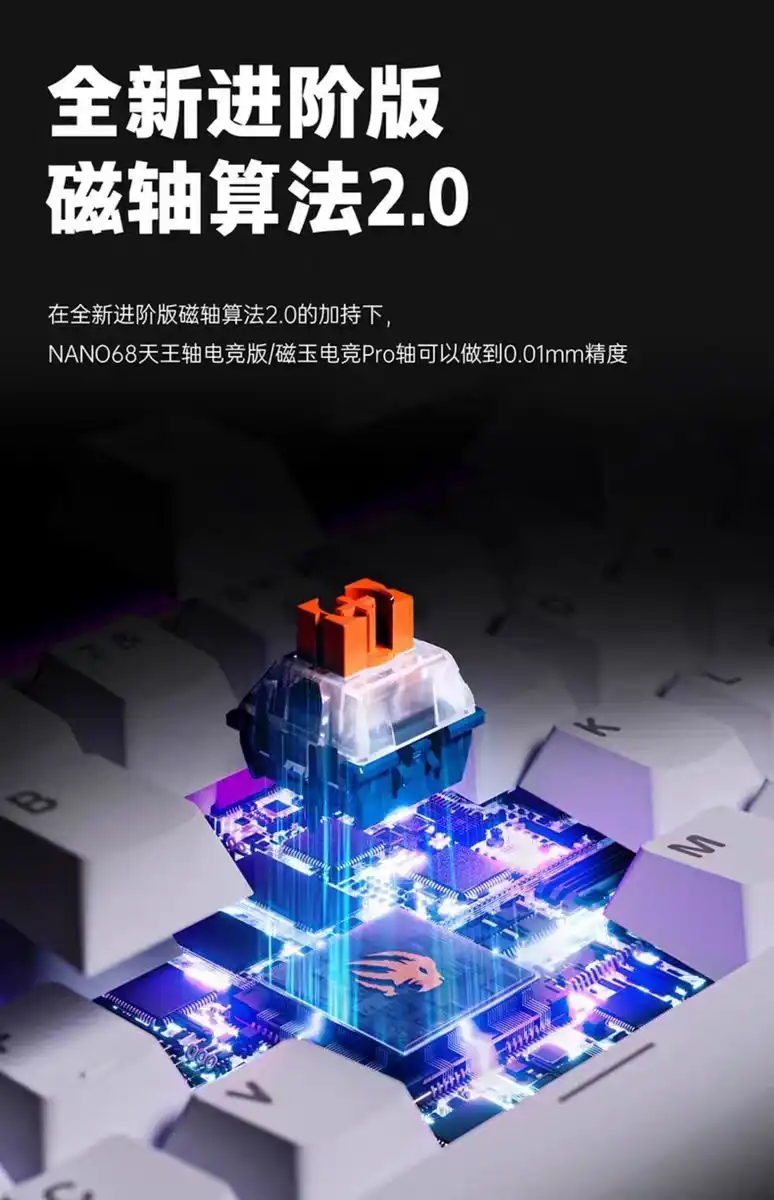 众所周知,磁轴作为最适合打Fps游戏的种轴体,因此深受瓦学弟和go学长的喜爱。但是众所不周知的事,随着磁轴的兴起,市面上衍生出来了各式各样的磁轴,这些磁轴有的作为顶级轴体傲视群雄,有的则性能非常拉垮,滥竽充数。因此,选择一款好的磁轴是至关重要的。本期,笔者就和大家来聊一下搭载与万磁王同属t0梯队的定制磁玉电竞轴Pro键盘——美加狮nano68Pro