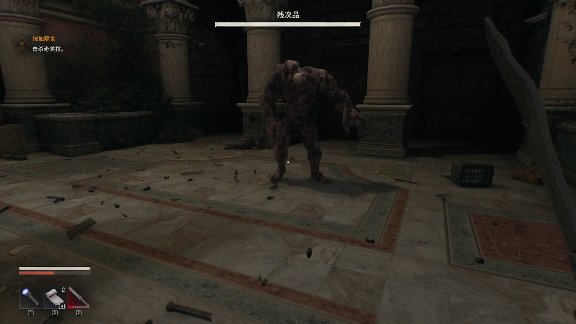 游戏前期的 "生存压力" 特别足,主要体现在体力机制上:角色的体力条很短,砍几刀丧尸就会见底,只能停下来恢复;更要命的是,体力耗尽后会触发红色惩罚状态 —— 短时间内不能攻击。要是遇到 3 只以上的丧尸围殴,几乎必死无疑。这种机制让前期打奇美拉时,玩出了类魂游戏的感觉:比如打主线第一只奇美拉时,它的攻击范围大,躲完后想反击。却发现体力不够,只能眼睁睁看着它再来一次攻击;而且它的血量厚,需要反复周旋几分钟,被摸到一下就会掉半管血,容错率极低。我前前后后死了 5 次,才摸透它的攻击规律,最后靠 "走打结合" 的战术才勉强通关。