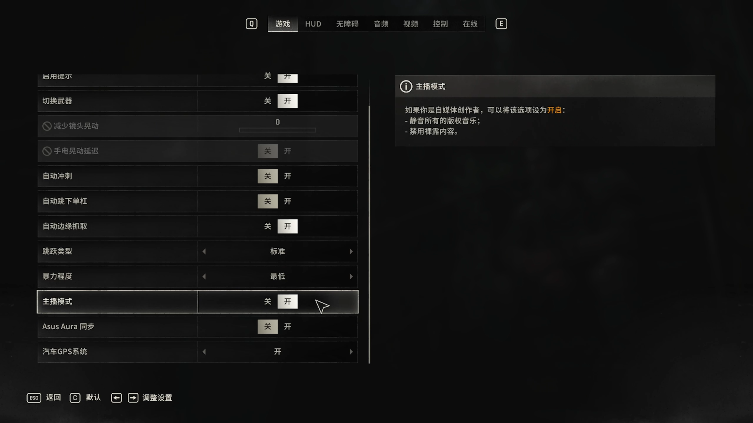 这种优化水准,真的能看出厂商的诚意 —— 要知道有些 3A 游戏发售后,非但不解决优化问题,还甩锅玩家 "配置太低"。对比之下,Techland从《消逝的光芒 2》到《困兽》,始终把设备适配放在首位,这份态度就值得点赞。对自媒体作者来说,这次新增的 "主播模式" 堪称贴心设计。虽然开启后在部分对暴力内容敏感的短视频平台直播,仍有被限流的风险。但 "有总比没有强" 这句话,几乎是所有游戏主播的共识。这个模式的调节选项相当细致:暴力程度从低到高共有三级。比如降低可见的血腥画面、身体伤害和肢解效果。版权音乐静音功能也很实用,避免发布视频时触发侵权警告;